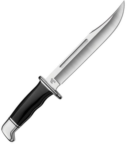 8.75" (22.23cm) overall. 4.5" (11.43cm) satin finish 420HC stainless clip point blade. Duralumin guard and pommel. Black finger grooved Phenolic handle. Black leather belt sheath.